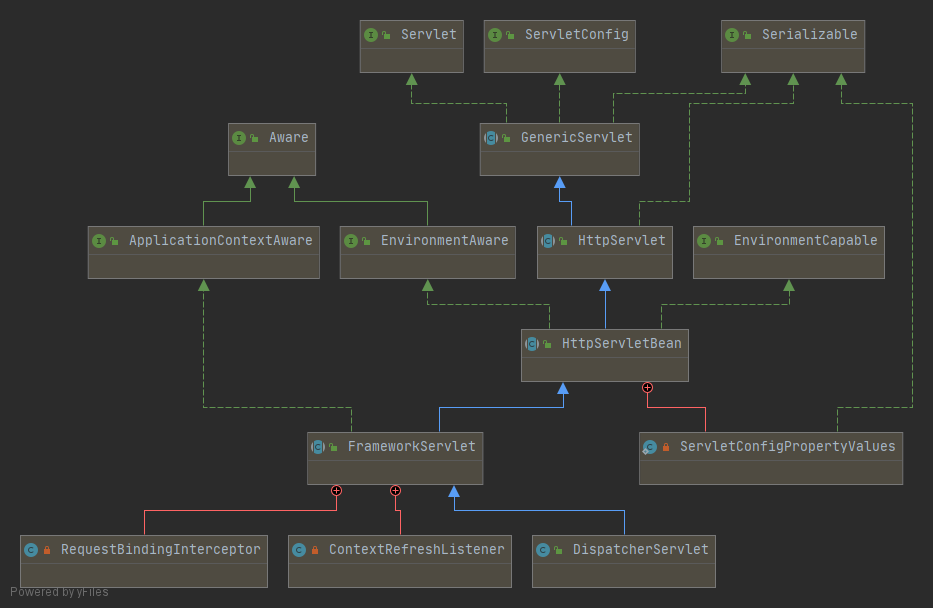 DispatcherServlet? 如图所示:DispatcherServlet 是一个实际的 Servlet ,继承自 HttpServlet 。