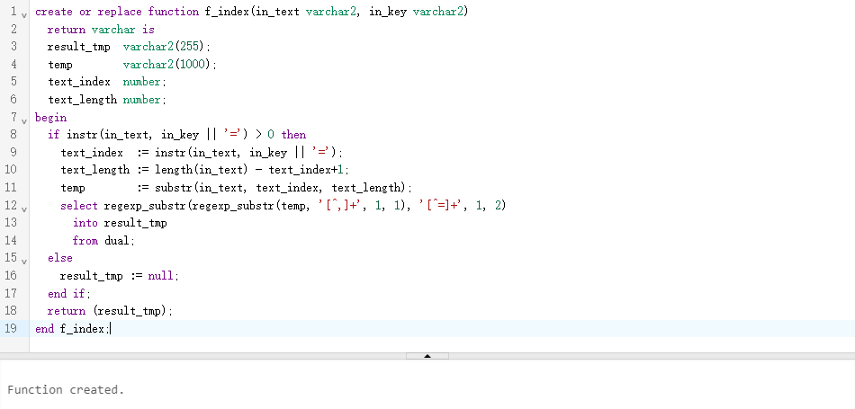 1 | create or replace function f_index(in_text varchar2, in_key varchar2) |