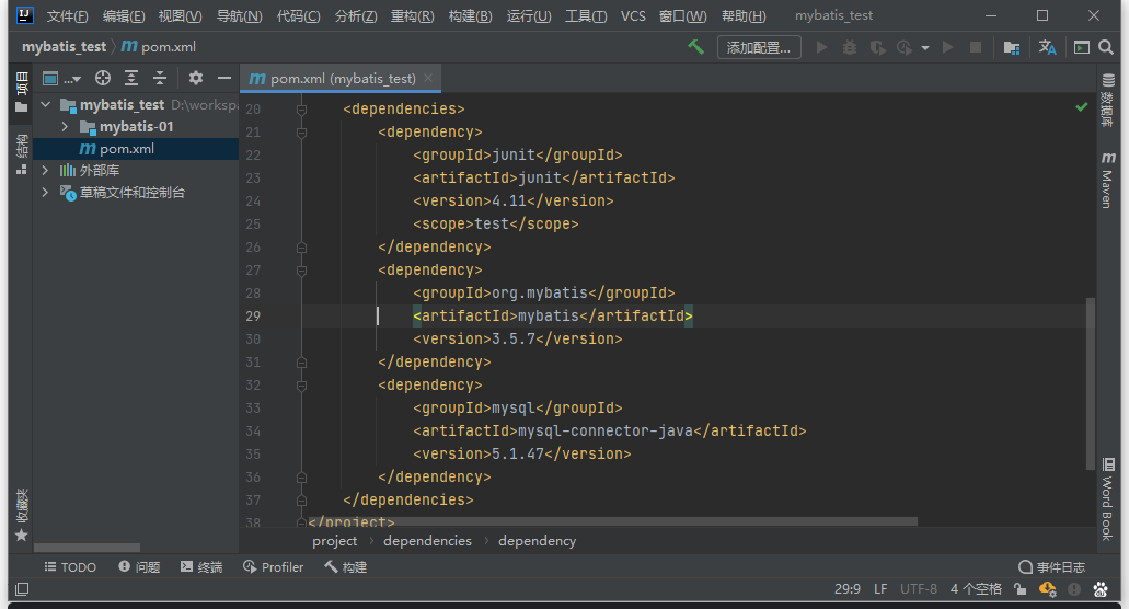 - 在 resources 中新建核心配置文件 mybatis-config.xml