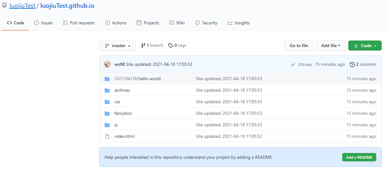 部署成功后再看git仓库就会发现其实部署的内容就是