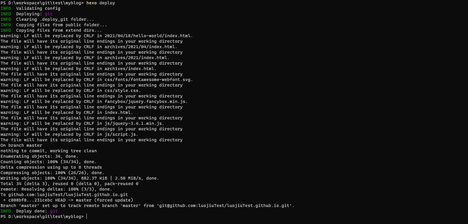 1 npm install hexo-deployer-git --save安装好了!!!部署!!!