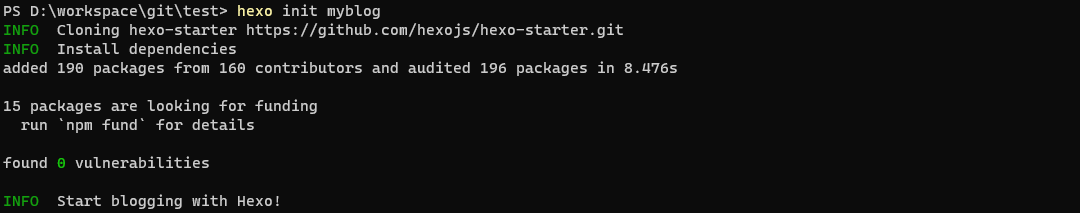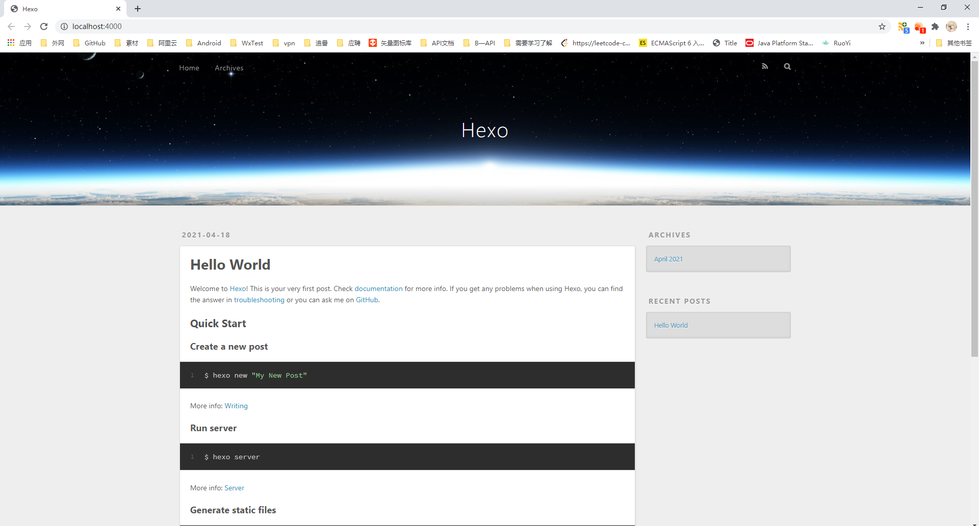 现在我们已经做好了准备工作,接下来我们新建一个hexo博客并在本地跑起来吧