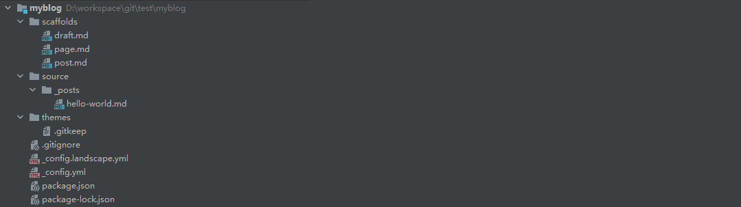 此时会多出一个myblog文件夹里面就是Hexo的初始化文件