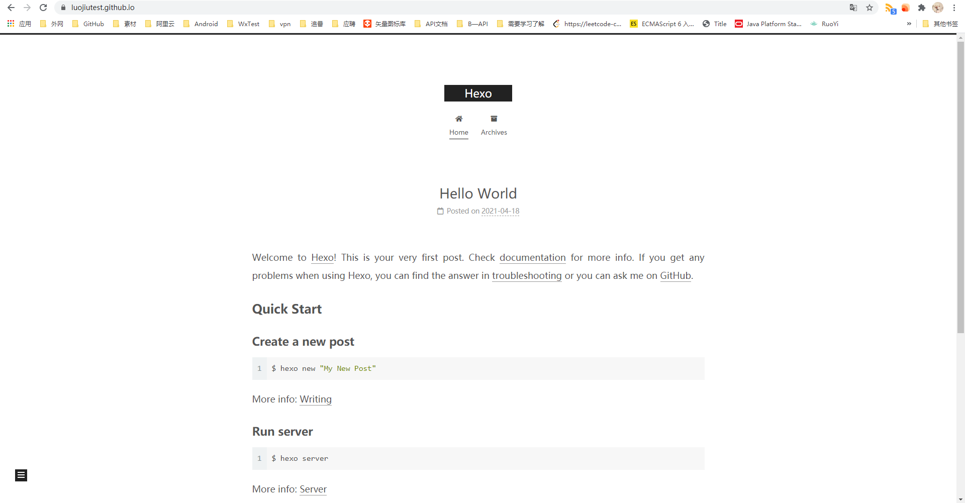 至此我们经过初始化、编译、预览这三个命令,就已经有了一个可以在本地运行的博客了